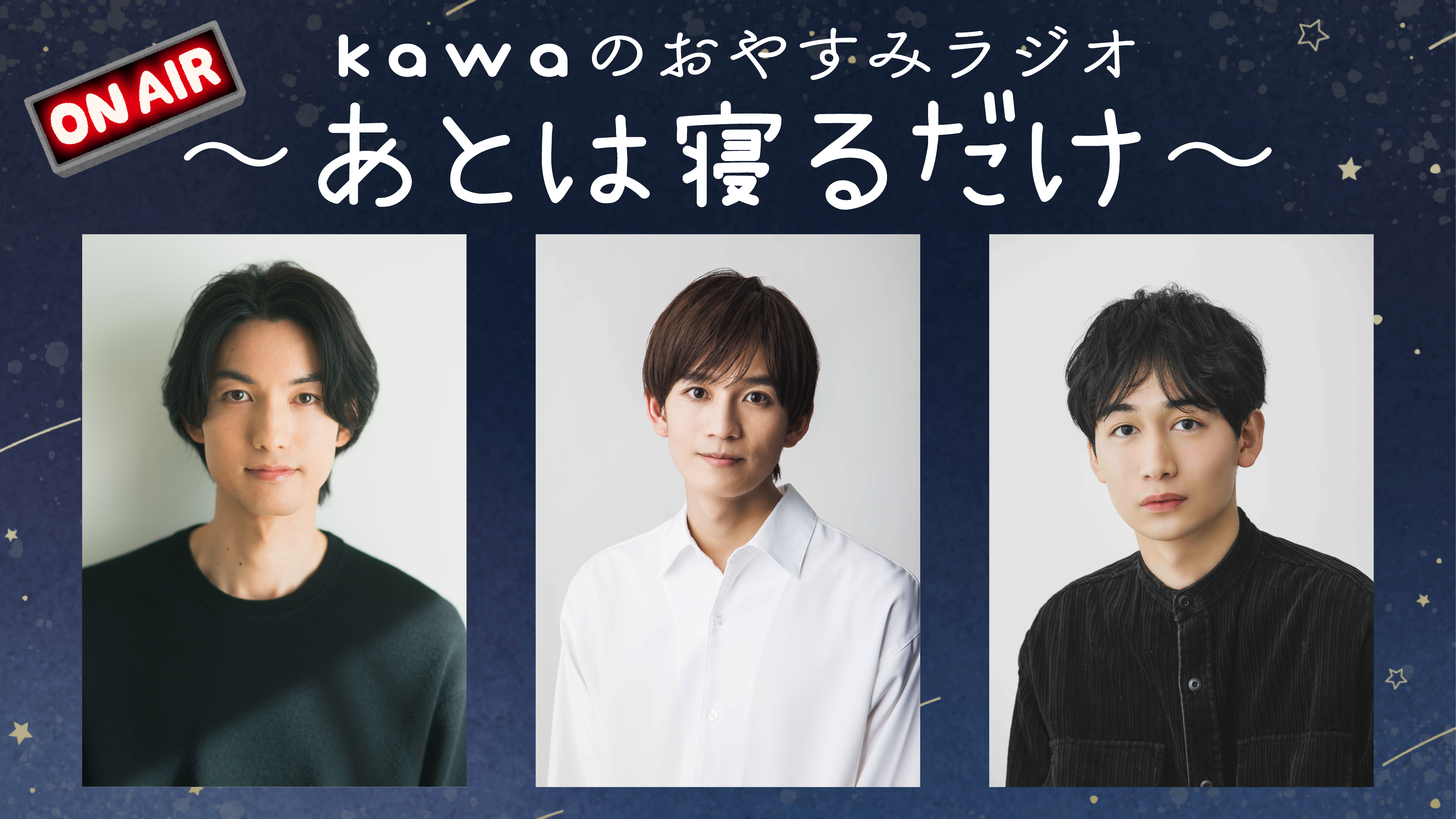 神田聖司、林勇輝、安田啓人がYoutubeでお送りするゆるっとトークラジオ風コンテンツ「kawaのおやすみラジオ〜あとは寝るだけ〜」。